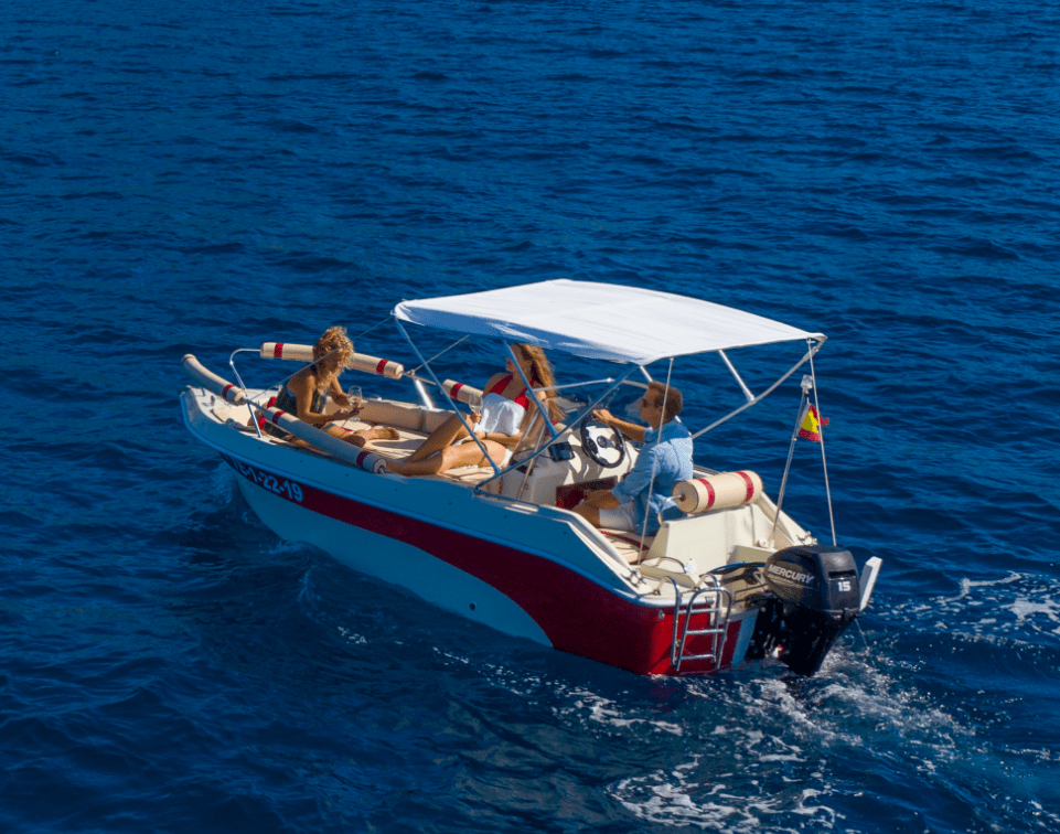 Specifications: Model 470 Open | Length 4.7 m | Engine 15 hp | Capacity 5 people | Self drive | No license required | Departure: Puerto Colón